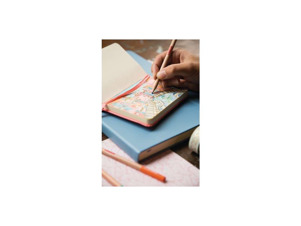 Art Creation Sketch Book je překrásný skicák v bloku 13 x 21 cm s 80 listy 140 g/m2. Papír je přírodně bílý, nebělený polokarton, desky v úchvatných pastelových a trendy odstínech, velurové, imitace kůže. Blok je uzavřený zajištěn plochou gumičkou, nechybí ani stužková záložka.