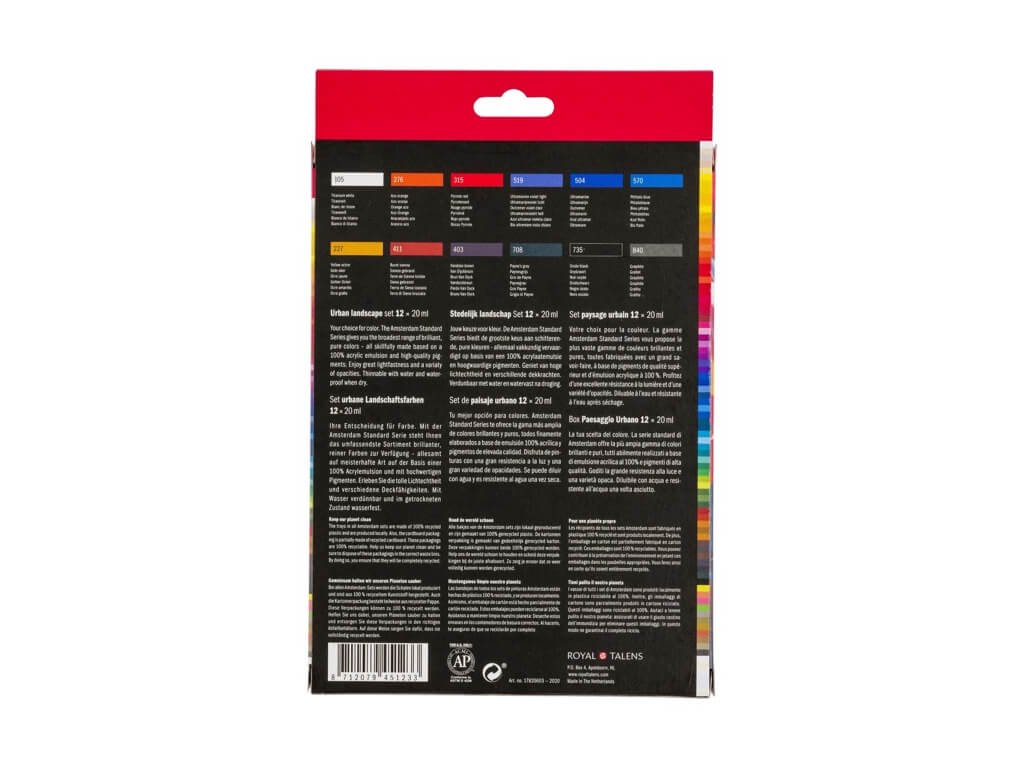 Sady nejoblíbenějších akrylových barev holandského výrobce Royal Talens, AMSTERDAM ACRYLIC série Standard, ve dvacetimilitlirových plastových tubách.