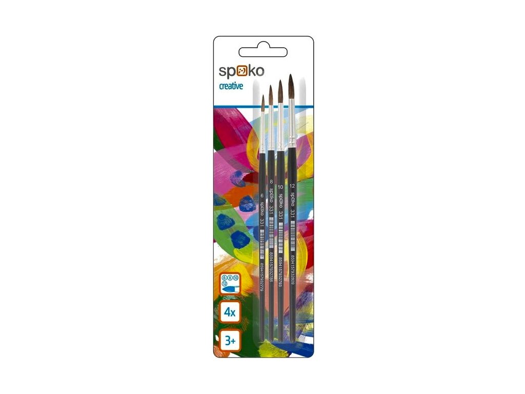 Sada 4 štětců s přírodními vlasy vhodná pro děti do školy a školky či na domácí malování. V sadě najdete 4 různě velké kulaté štětce s jemnými vlasy z poníka. Velikosti štětců v sadě jsou 6, 8, 10 a 12. Štětce Spoko jsou vhodné na dětské malování a jiné tvoření.