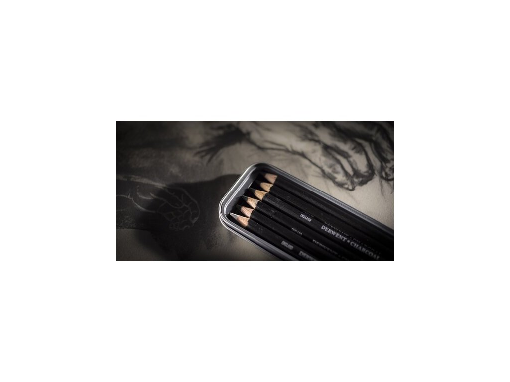 Zabalte uhel do dřeva a najednou je tu něco mnohem modernějšího - Derwent Charcoal Pencils! Tento uhel v tužce vám poskytne skvělou kontrolu nad kresbami. Avšak všechny tradiční efekty typické pro uhly, které máte rádi, jsou nadále zachovány zachovat a to s menším nepořádkem! Plesová krabička obsahuje 6 ks : 1 x světlý uhel, 2 x střední uhel, 2 x tmavý uhel, 1 x bílá křída a ořezávátko.